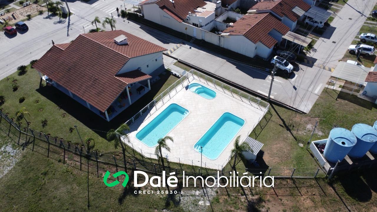 Casas de 02 e 03 dormitórios, 02 salões de festas, 03 Piscinas, sendo 02 adulto e 01 infantil, Quiosques com churrasqueira, Playground, Pórtico com Guarita e Portaria 24h.